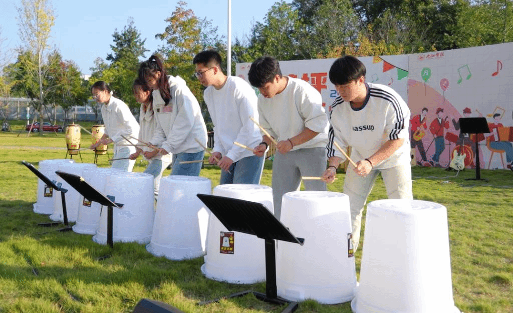 艺术学院打击乐教师纪宇媛为到场的观众们带来了“美育小课堂”,介绍了马林巴、颤音琴、邦哥鼓等多种打击乐器,受到了现场观众的高度喜爱。随后,打击乐团的演奏员们以一首极具巴西特色的《Tico-Tico》展现了音乐的多样性和丰富性。《沙漠三幕》以其独特的节奏和旋律,展现了沙漠的辽阔和神秘。他们还巧妙地将日常生活中的垃圾桶转化为打击乐器,通过敲击和节奏的编排,创造出充满活力和创意的音乐表演。古筝与打击乐合奏的《西部主题畅想曲》同样展现了新疆木卡姆音乐的独特魅力。