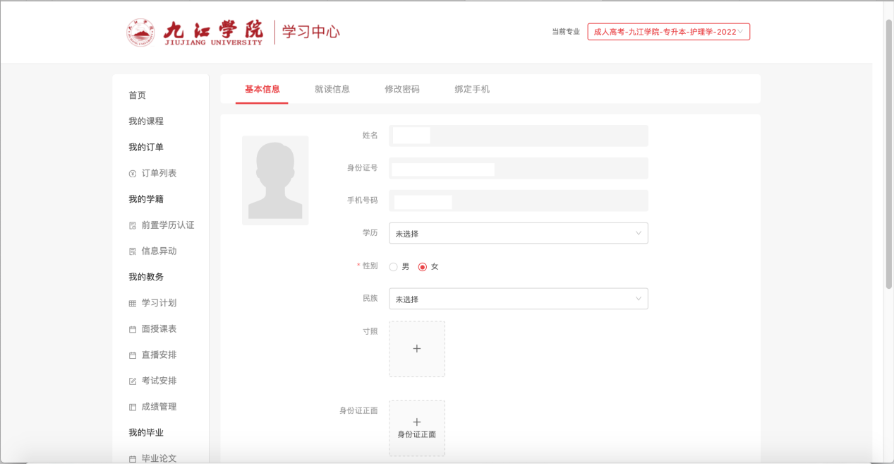 进入首页,首先各位同学确认个人信息无误,否则无法进行其它操作。完善后点【确认无误】