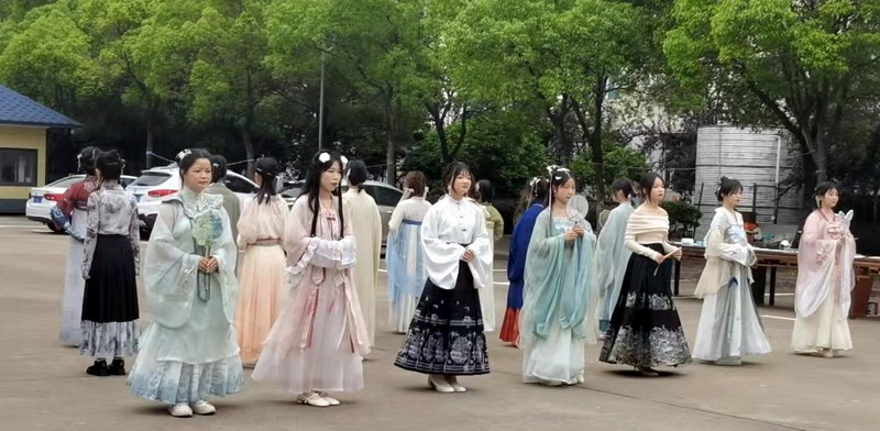 本次樱花诗会共有古风舞蹈、古风歌曲演唱、汉服秀、茶艺表演、朗诵和趣味游戏等六项内容。