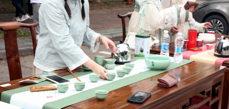 表演环节包括古风舞蹈、汉服秀,文艺部的古风舞蹈和礼仪队的汉服秀,将我们带回了古代华夏的风雅时光,感受了古颜经典之美。书法现场写作活动更是将智慧与艺术完美结合,而茶艺表演也为现场观众呈现了一场中华传统文化的饕餮盛宴。