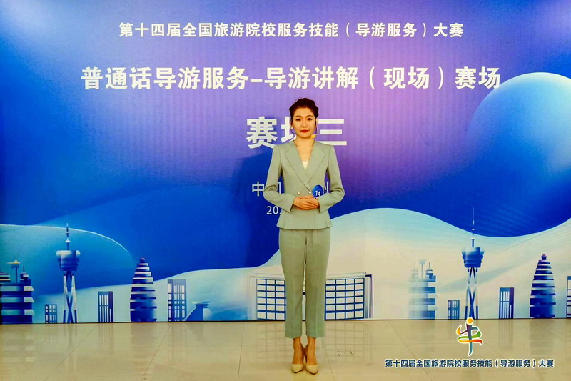 旅游与地理学院领导十分重视本次大赛,成立了赛事筹备小组,选派4名同学分别参加了普通话导游服务和英语导游服务两个项目。在比赛过程中,四位同学沉着应对,从容不迫地应对着每一个环节的比拼,向评委和观众展示了旅院学子的青春风采。