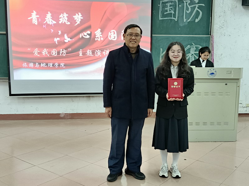 经过激烈的角逐,评委们从讲稿内容、语言表达、综合效果等方面进行综合评分,评选出本次演讲比赛一、二、三等奖和优秀奖。A2452班曾可人同学获得一等奖;A2351班欧阳锦成同学获得二等奖;A2452王春同学、A2321何声涛同学获得三等奖;A2422班杨月璇同学、朱结云同学获得优秀奖。赛后,吴彭年应邀对本场比赛进行了点评总结。学院领导和评委为获奖选手颁发了证书。至此旅游与地理学院2025年“青春筑梦,心系国防”主题演讲比赛圆满结束。