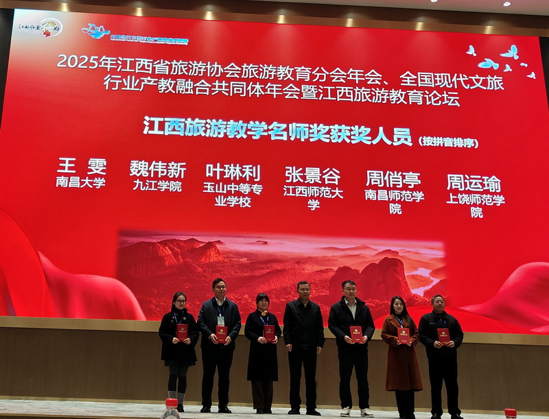 会上举行了第四届“江西旅游教育奖”颁奖活动,我院再次荣获“江西省旅游教育先进奖”;魏伟新副教授荣获“江西省旅游教学名师”荣誉称号。