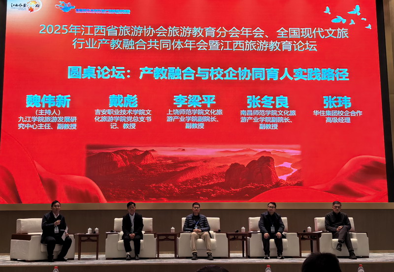 会议第二阶段举行了“产教融合圆桌论坛”,我院魏伟新老师作为业内知名专家,应邀主持了该论坛。论坛围绕旅游产业发展趋势与人才培养需求、校企合作模式创新、产教融合路径探索等关键议题展开深入研讨。魏伟新老师凭借其对旅游行业发展的深刻洞察和丰富的教育教学经验,引导论坛嘉宾积极发言、热烈讨论,为推动江西省旅游教育与产业深度融合、培养更多适应行业发展需求的高素质应用型人才贡献了智慧和力量,赢得了与会代表的广泛赞誉。