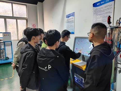 在湖口化工实训基地总经理李文华和基地主讲李登老师的言传身教下,学生近距离观摩了“化工自动化控制仪表”和“化工危险工艺特种作业”等操作流程,并在“化工自动化控制仪表”和“化工危险工艺特种作业”实操实训设备进行上机操作。这一过程不仅加深了学生对化工自动化控制仪表和化工危险工艺特种作业理论知识的理解,也激发了他们对化工企业工作的兴趣。