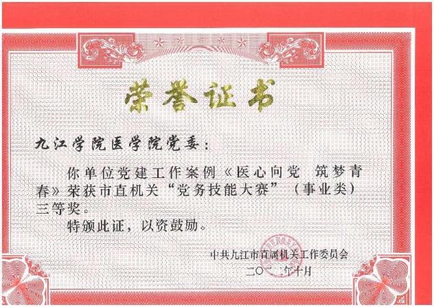 学院人才培养成效显著,2名学生获评“2020年九江市优秀共青团员”;学院团委获评2022年“九江市五四红旗团委”;2名学生干部荣获“浔阳区优秀共青团员”“九江市优秀志愿者个人”等称号。