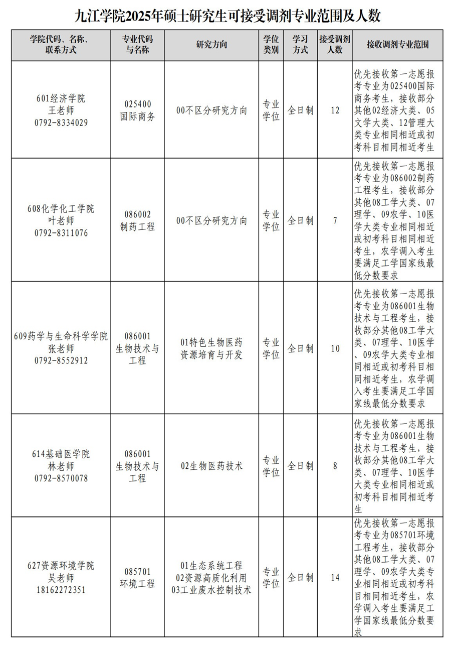 (二)凡有意向调剂的考生请先仔细阅读我校《九江学院2025年硕士研究生招生简章》,并在“全国硕士生招生调剂服务系统”(公网网址:https://yz.chsi.com.cn,教育网网址:http://yz.chsi.cn)开通后,登陆查看我校相关专业缺额情况、填报调剂志愿。