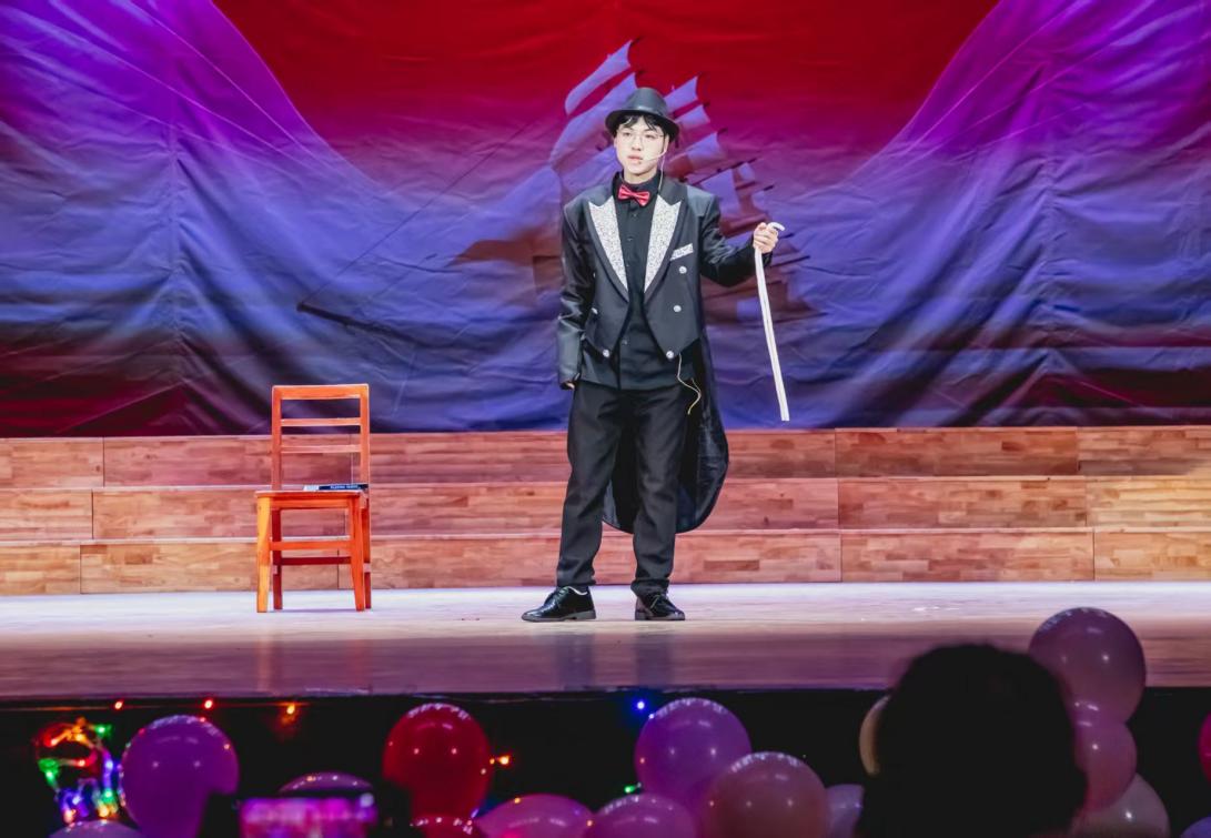 魔术《绳环引渡》的登场更是将现场氛围推向小高潮,参演学子凭借精巧的道具设计、娴熟流畅的手法技巧,不断带来令人惊叹的奇幻效果。歌曲串烧环节堪称整场晚会的“高光时刻”,四首风格迥异的经典曲目无缝衔接、层层递进。《天下》的豪情壮志、《至少还有你》的温情脉脉、《半点心》的轻快灵动、《找自己》的率性洒脱,参演学生以稳定的演唱水准、饱满的情感表达,将每首歌曲的独特韵味诠释得恰到好处。熟悉的旋律响起时,不少新生自发跟唱,现场化作一片青春的海洋,掌声与欢呼声此起彼伏。