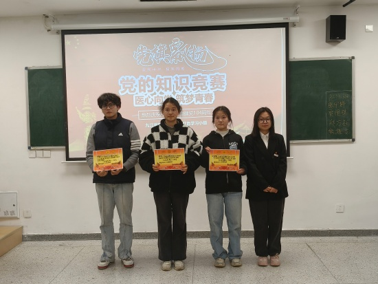 为夯实学生党的理论知识基础,强化理想信念教育和爱党爱国教育,营造以赛促学、比学赶超的良好学习氛围,基础医学院“医心向党”九医红色学习小组于12月10日星期三下午3点,在研究生楼330教室组织举办了党的知识竞赛决赛。递交入党申请书的同学和入党积极分子积极报名参加本次活动,参赛选手同台竞技、展现风采。