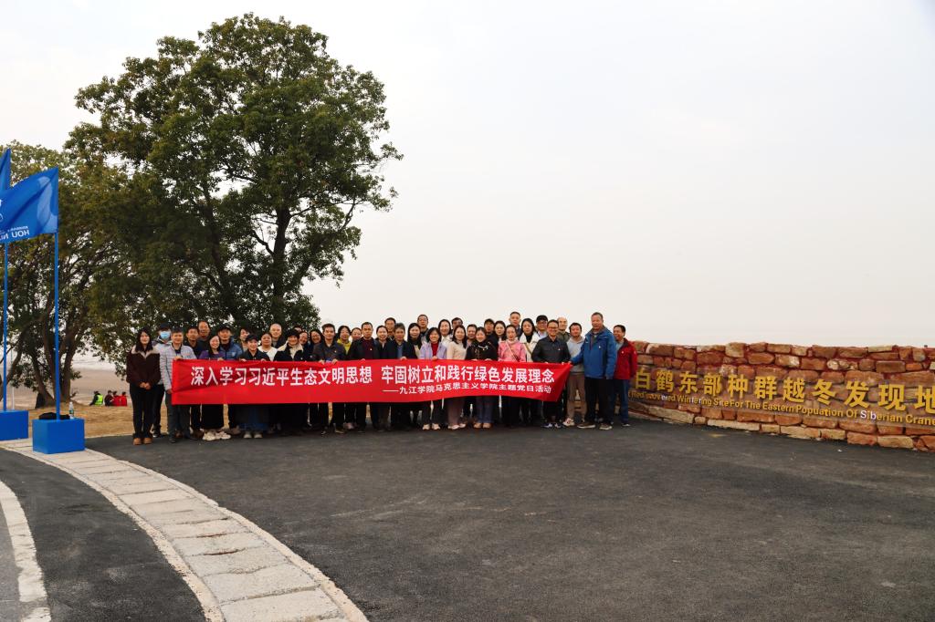 为深入学习贯彻习近平生态文明思想,牢固树立和践行绿色发展理念,12月20日,九江学院马克思主义学院组织全体教师党员,赴永修县吴城候鸟小镇开展主题党日活动。