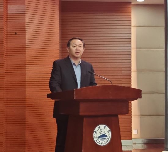 签订仪式后,举行了学术报告会。江西省生态环境科学研究与规划院大气所负责人涂翔作了题为《江西省臭氧污染形成机制及其控制策略》的报告,深入剖析了江西省空气质量现状,臭氧生成机制、防治关键问题、控制对策等,并与在场师生展开了深入交流。