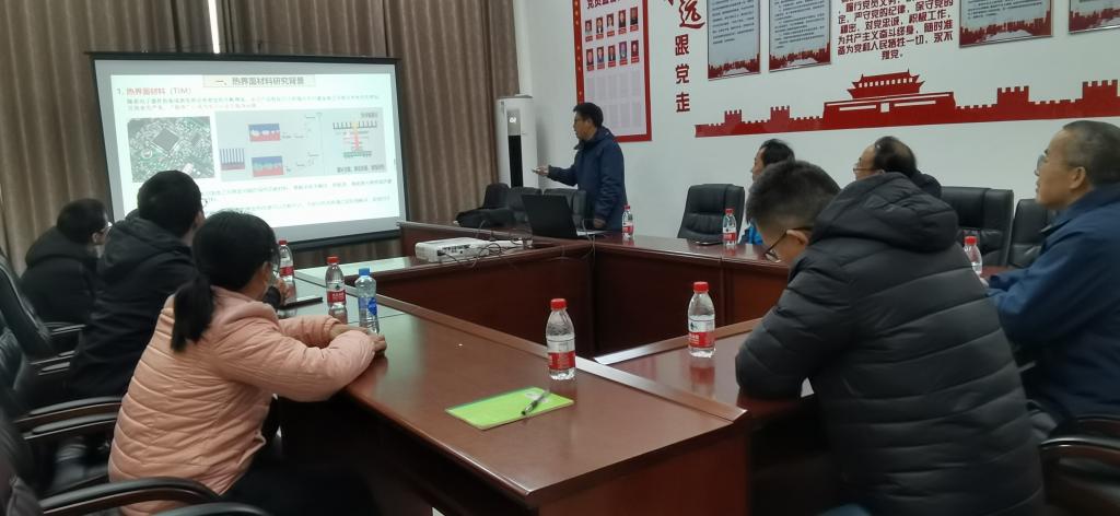 段兴凯博士以“热界面(TIM)材料研究进展”为题,介绍了热界面(TIM)材料的研究背景、研究现状和发展趋势,并结合热界面材料的应用场景分析了该类材料研究好和应用目前存在的问题,解释了热界面材料的传热机理和界面影响的主要因素,与在座老师对该材料在电子工程、散热领域的应用,以及后期拟开展的工作进行了探讨交流。