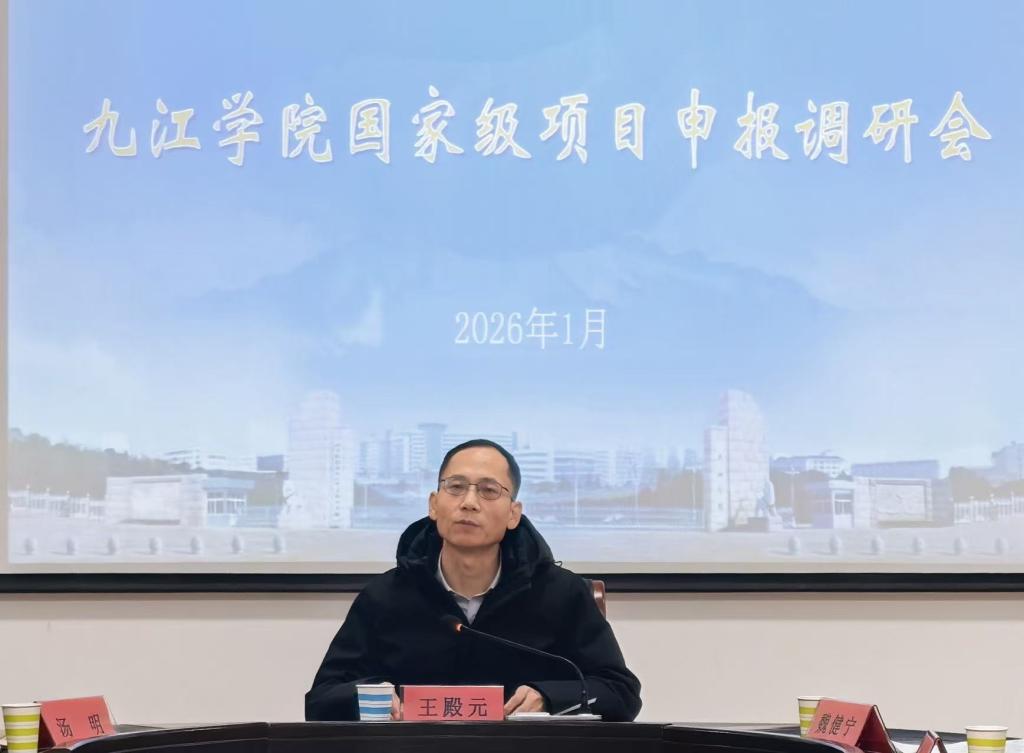 为扎实推进国家级项目申报工作,2026年1月14日至15日,九江学院先后召开三场国家级项目申报调研会。校党委副书记王殿元出席会议并讲话,科研处负责人、各二级学院院长、科研副院长及国家级项目申报教师代表等100余人参加。
