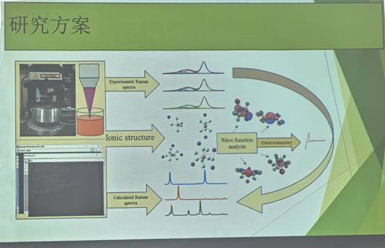 林明博士以“高温拉曼光谱和量子电化学方法对KF-ZrF4熔盐体系结构动力学研究”为主题分享了最新发表的《Inorganic Chemistry》期刊上的学术论文研究内容及相关结论。