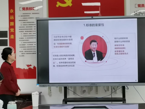 本次主题讲座内容由邹婧杰老师与全院专任教师分享。首先,邹老师以习近平总书记在39届国际标准化组织大会贺信“标准助推创新发展,标准引领时代发展”向全体教师强调标准的重要性。