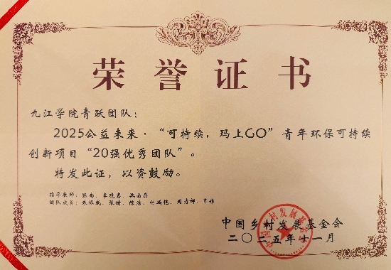 这份亮眼成绩的背后,是师生同心协力的不懈付出。备赛及赛事全过程,张南、魏晶晶、李晓慧三位指导老师从项目方案设计、内容打磨到现场展示环节,提供全流程、专业化的指导与支持;团队成员们分工明确、紧密协作,反复推敲优化项目细节,以扎实的实践落地能力和新颖的创新思路,在全国舞台上彰显了九江学院青年学子关注社会、践行环保的责任与担当。