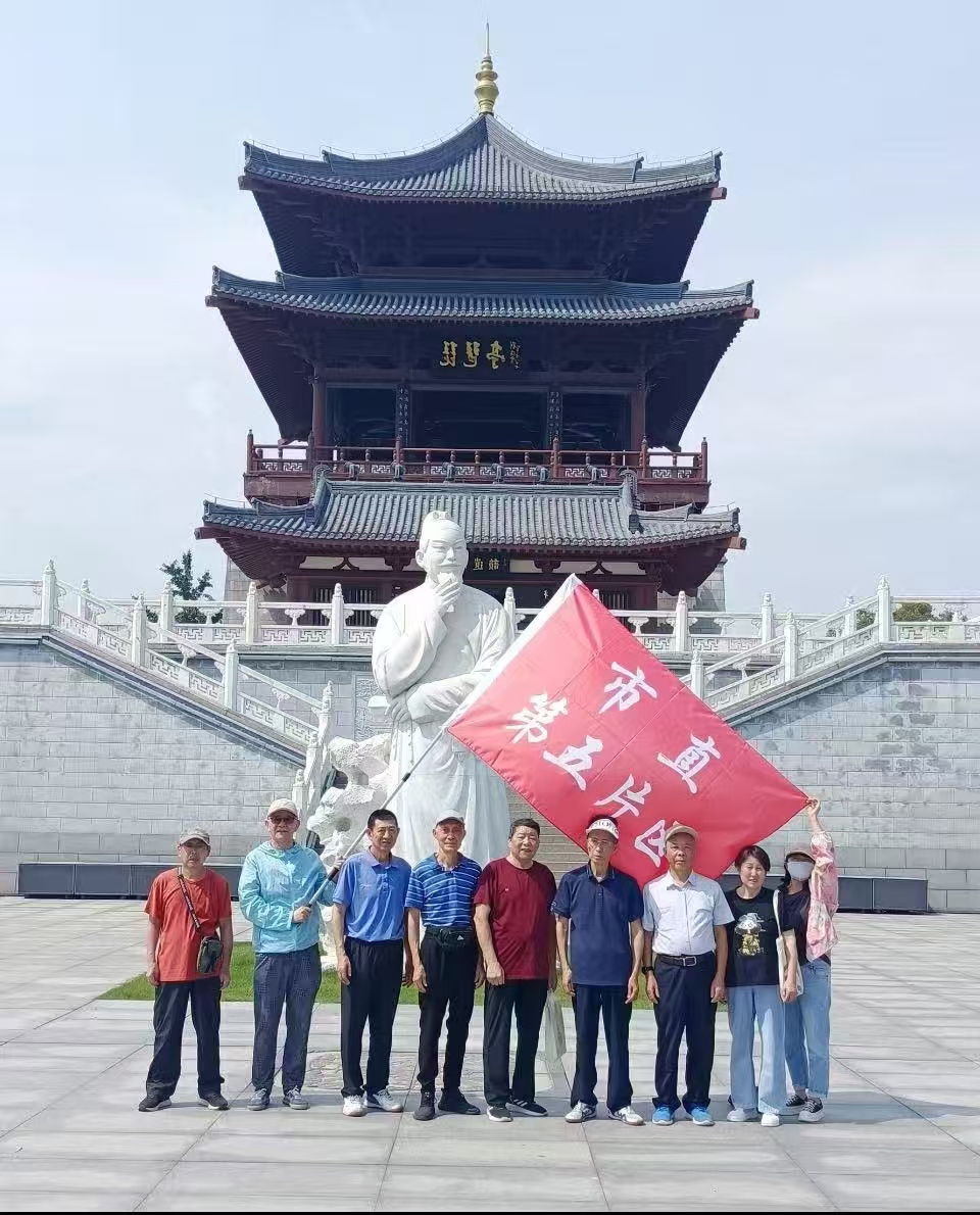 6月26日,浔阳区琵琶亭前,市老年体协正在举办“听党话、感党恩、跟党走--”活动。全市有近400名老同志参与其中,我校也有九位老同志前来参与。队伍中,我校老支书85岁的老党员王坚强尤为醒目。他身形挺拔,步伐稳健,胸前党徽在阳光下格外耀眼。当天上午现场热闹非凡,健步走的老同志们个个精神抖擞。